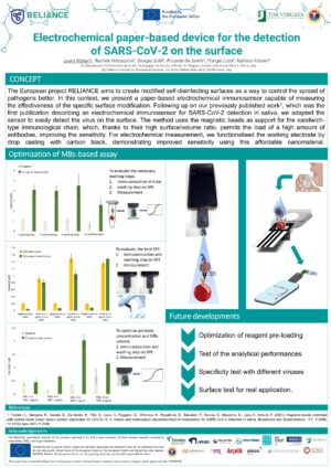 A poster titled “Electrochemical paper-based device for the detection of SARS-CoV-2 on the surface” presented RELIANCE project at the 35th edition of the Biosensors Congress 2025 in Lisbon, Portugal, from 19 to 22 May 2025.
